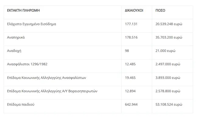 - Ελάχιστο Εγγυημένο Εισόδημα: δικαιούχοι 177.013 – 41.125.818 ευρώ
