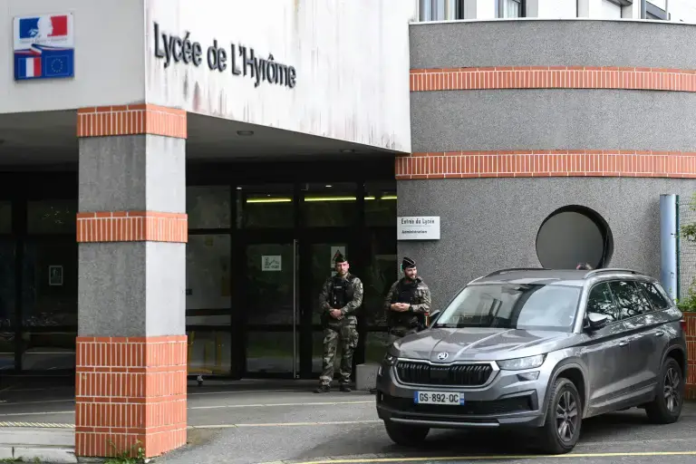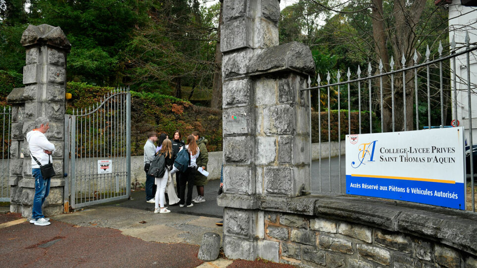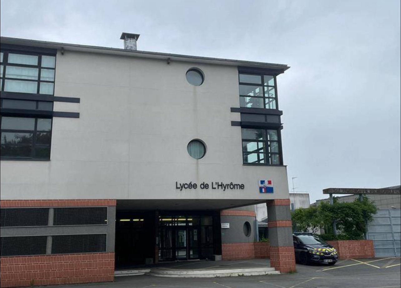 Αξιωματούχοι της αστυνομίας φαίνονται μπροστά στο Λύκειο (Lycee de l’Hyrome) όπου σημειώθηκε η επίθεση το πρωί της Δευτέρας, σύμφωνα με φωτογράφο του Γαλλικού Πρακτορείου που βρέθηκε στο σημείο.