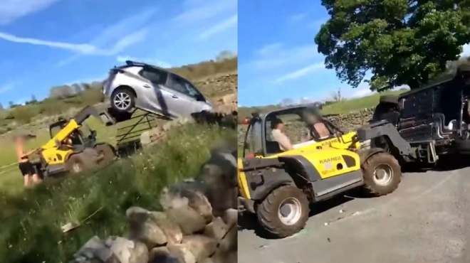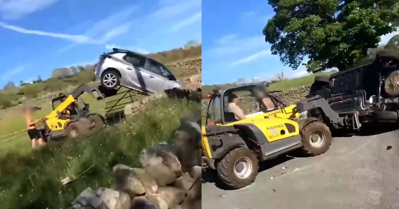Απίστευτο περιστατικό συνέβη στην Αγγλία όταν ένας αγρότης αποφάσισε να διαλύσει με κλαρκ ένα αυτοκίνητο που τον ενοχλούσε στο δρόμο.