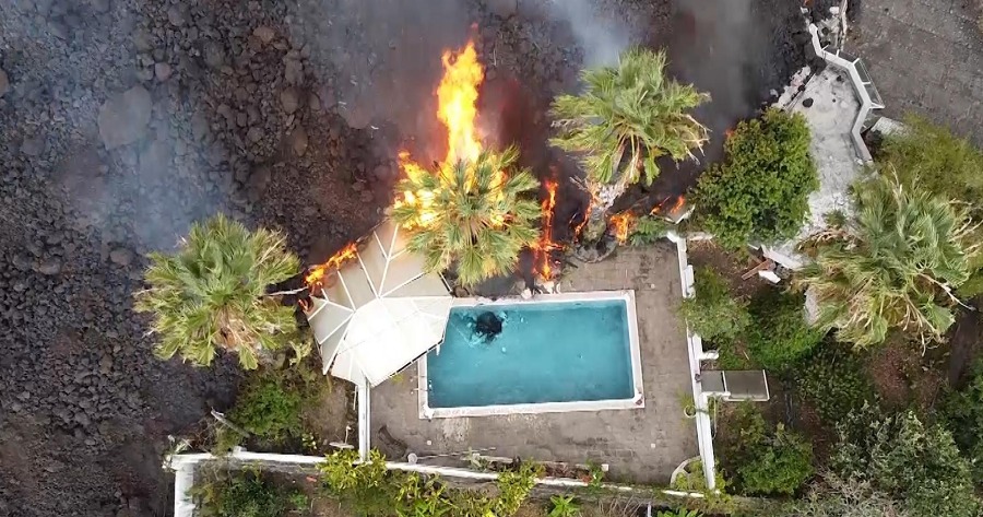 Αυτόπτης μάρτυρας του Reuters είδε ένα ποτάμι λιωμένων πετρωμάτων να ‘καταπίνει’ αργά ένα σπίτι στο χωριό Λος Καμπίτος και το εσωτερικό του να πιάνει φωτιά με τις φλόγες να βγαίνουν από τα παράθυρα και τη σκεπή.
