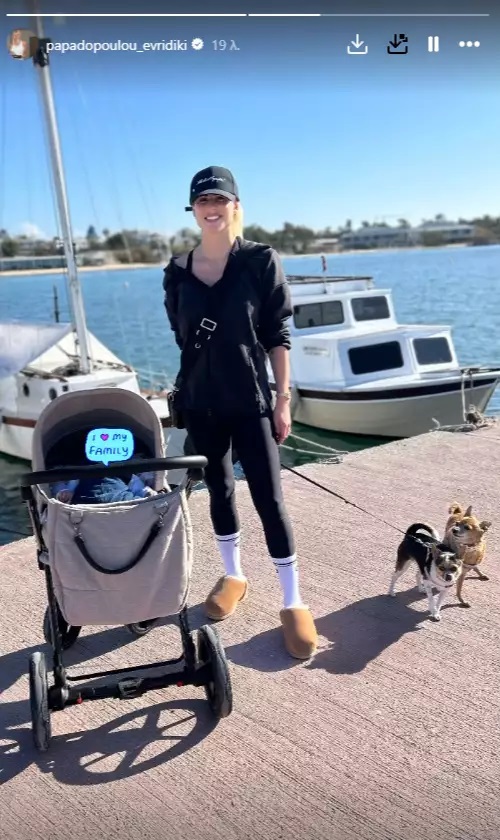 Το πρωί της Κυριακής, 12 Ιανουαρίου, η πρώην παίκτρια του Survivor εκμεταλλευόμενη τον καλό καιρό αποφάσισε να πάει βόλτα με το μωρό και τα σκυλάκια της οικογένειας. Δημοσίευσε μάλιστα τη στιγμή αυτή στο προσωπικό της προφίλ στο Instagram.