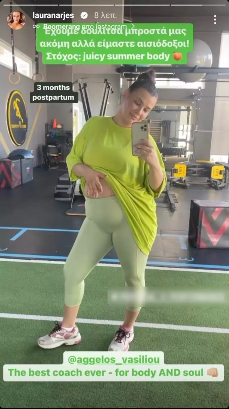 Η Λάουρα Νάργες σήμερα μοιράστηκε μαζί μας και μέσω social media την επίσκεψη της στο γυμναστήριό και με μια φωτογραφία μας έδειξε πώς είναι σήμερα το σώμα της, τρεις μήνες μετά τη γέννα.