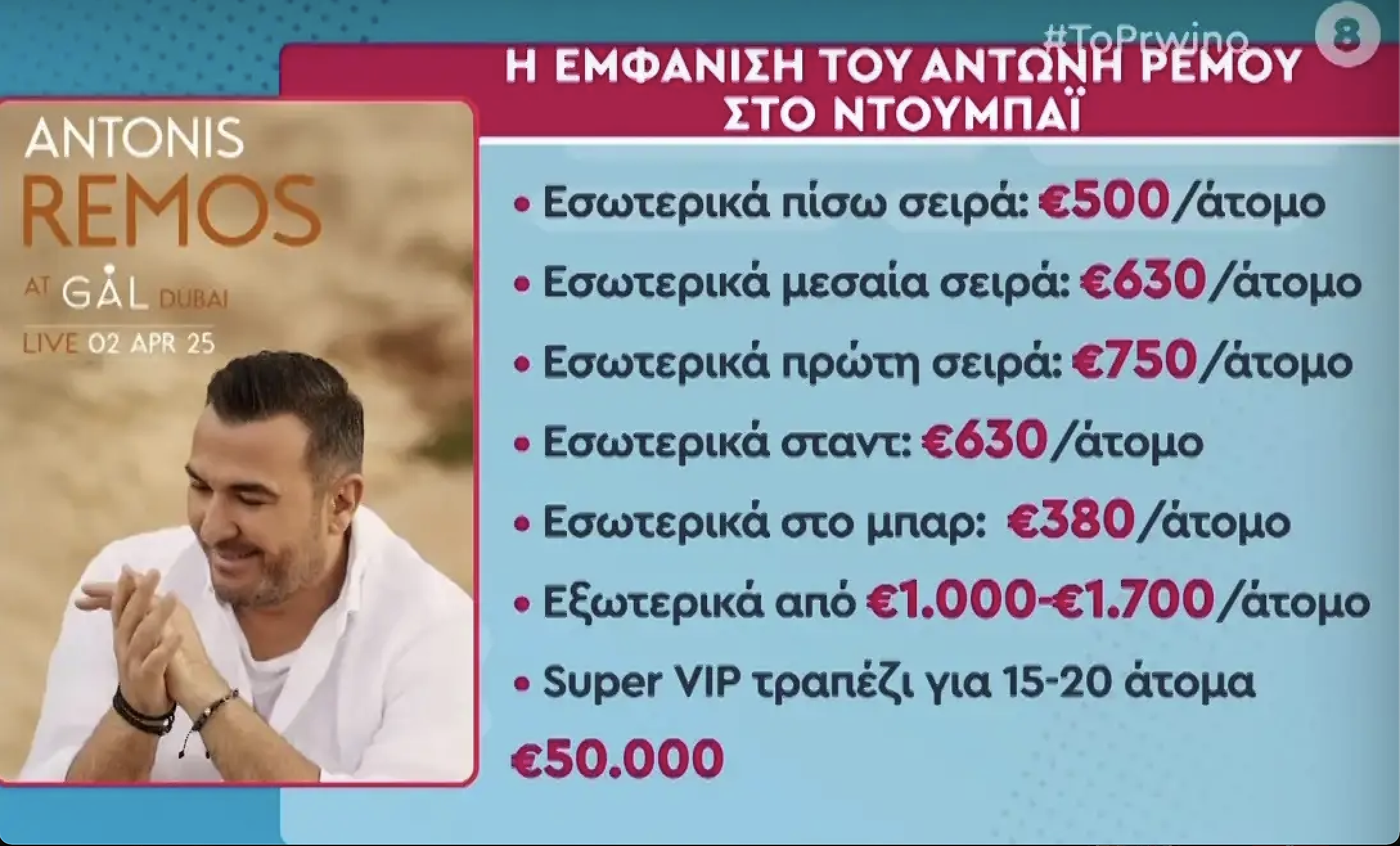 500 ευρώ θα χρειαστεί κάποιος αν θέλει να καθίσει στο τελευταίο τραπέζι πίσω, ενώ το super VIP τραπέζι για 15 με 20 άτομα «αγγίζει» τις 50.000 ευρώ!