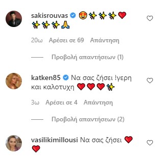 Η Ναταλία Γερμανού, η Φαίη Σκορδά, ο Σάκης Τανιμανίδης και η Μαρία Ηλιάκη, η Δούκισσα Νομικού, ο Γιώργος Λιανός, ο Σάκης Ρουβάς ήταν μερικοί μόνο από τους Έλληνες celebrities που έστειλαν τις ευχές τους.