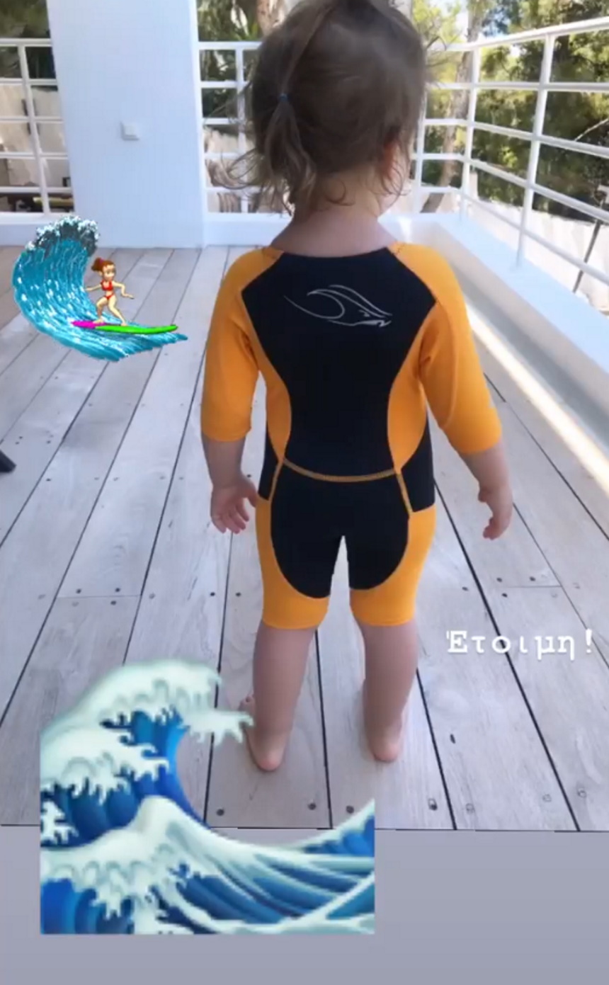 Λίγες ώρες αργότερα, η κοκκινομάλλα παρουσιάστρια μας αποκάλυψε ότι η κόρη της ακολουθεί τα χνάρια της, μιας και έχει τη δική της στολή για surf. Ωστόσο ακόμα δεν μπορεί να κάνει. Η μικρή Αλεξάνδρα μολονότι είναι 2 ετών έχει μάθει να κολυμπάει μόνη της κάνοντας περήφανους τους γονείς της. Συνεπώς δεν αργεί η ώρα που μαμά και κόρη θα δαμάσουν τα κύματα.