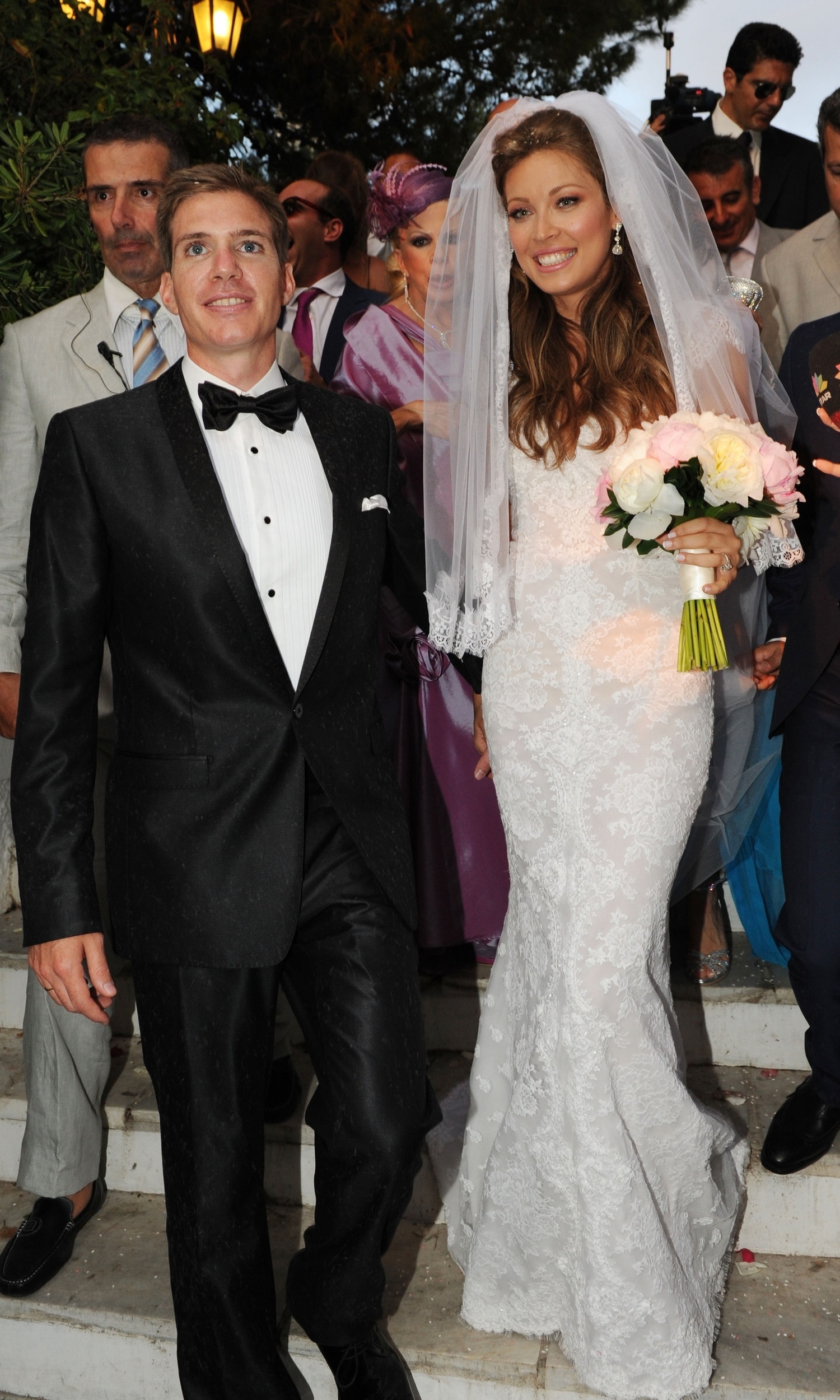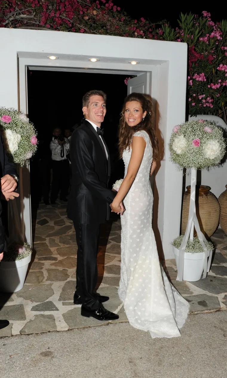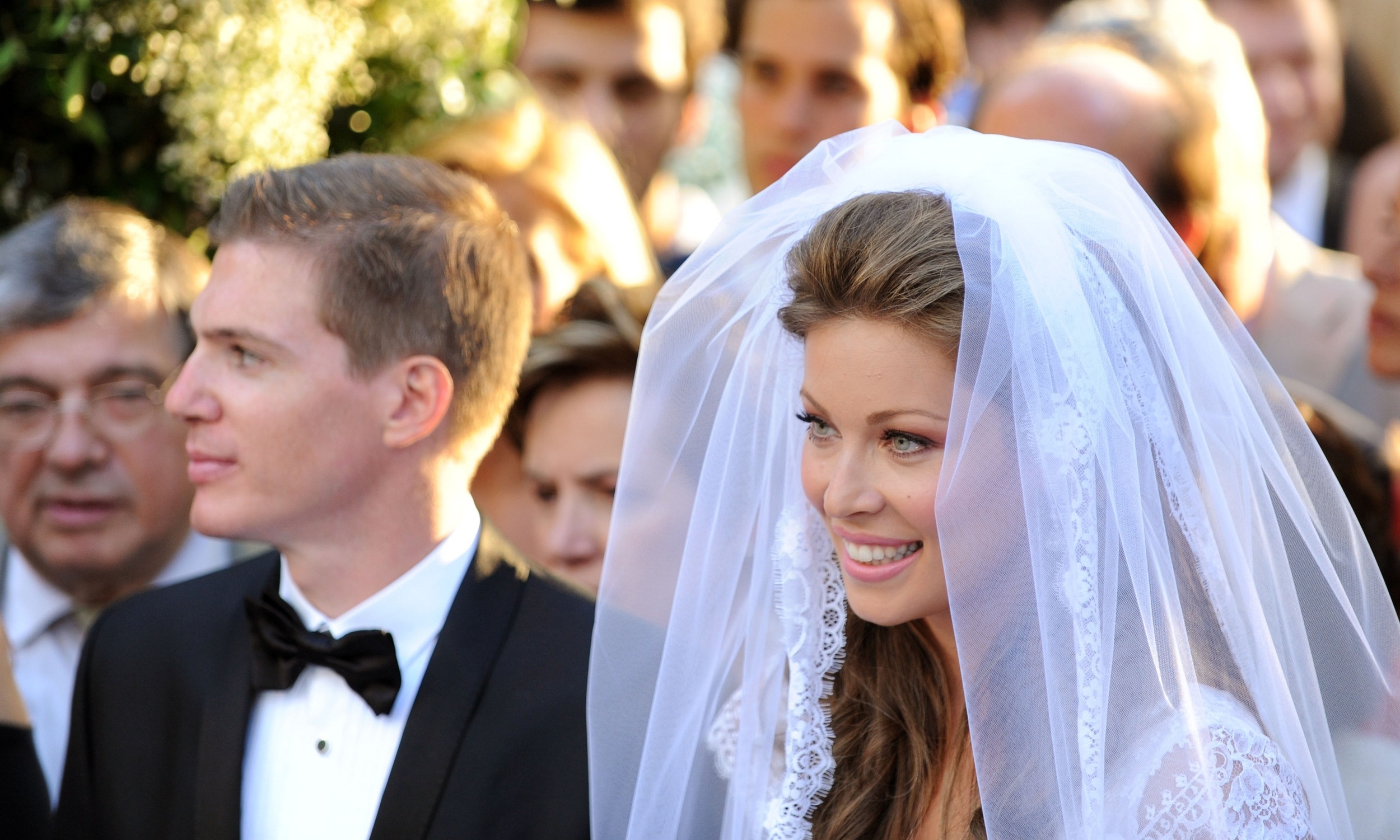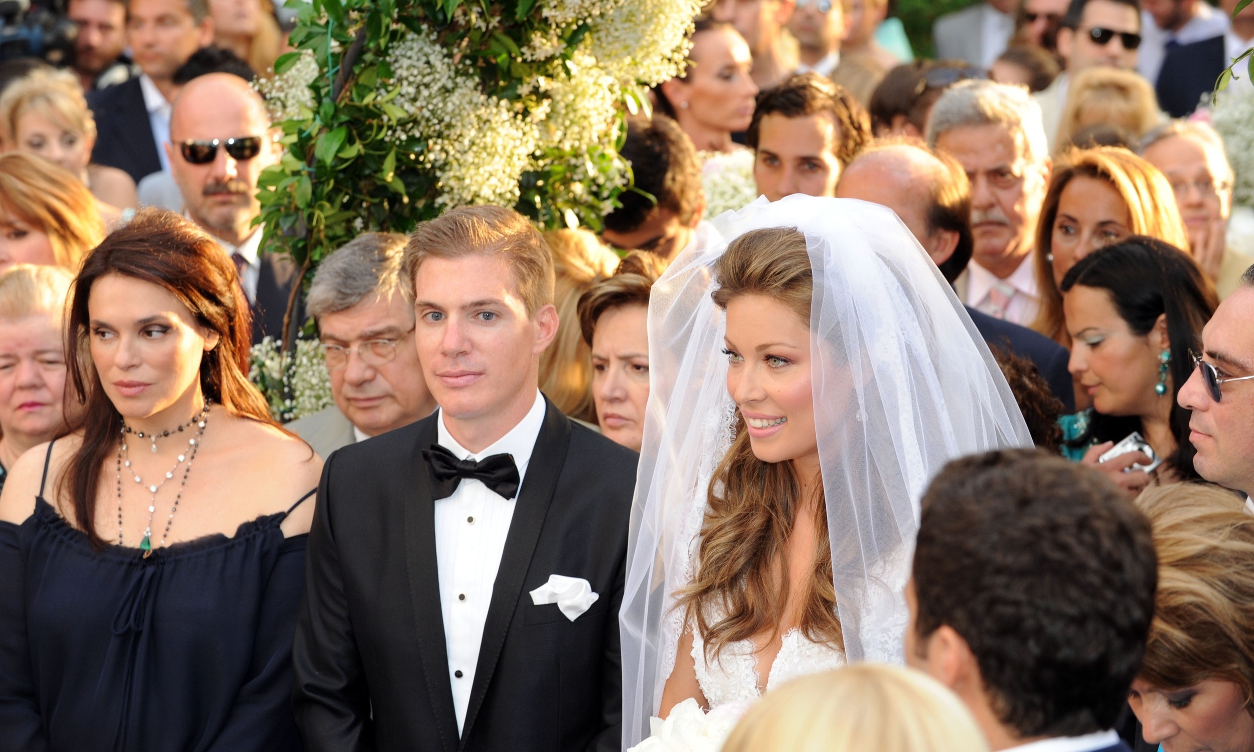 Το ζευγάρι παντρεύτηκε πριν από 15 χρόνια στον Άγιο Γεώργιο στο Καβούρι. Η εντυπωσιακή νύφη έφτασε στην εκκλησία λίγο μετά τις 19:00 το απόγευμα με ένα αυτοκίνητο αντίκα, συνοδευόμενη από τον αδελφό της Θανάση και τη μητέρα της Αγλαΐα.