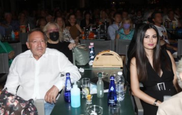 Όλα τα βλέμματα τράβηξε πάνω της η κατά 30 έτη νεότερη σύντροφος του Ανδρέα Φουστάνου, Βίκυ Μανώλη, σε σπάνια κοινή τους εμφάνιση στο θέατρο.