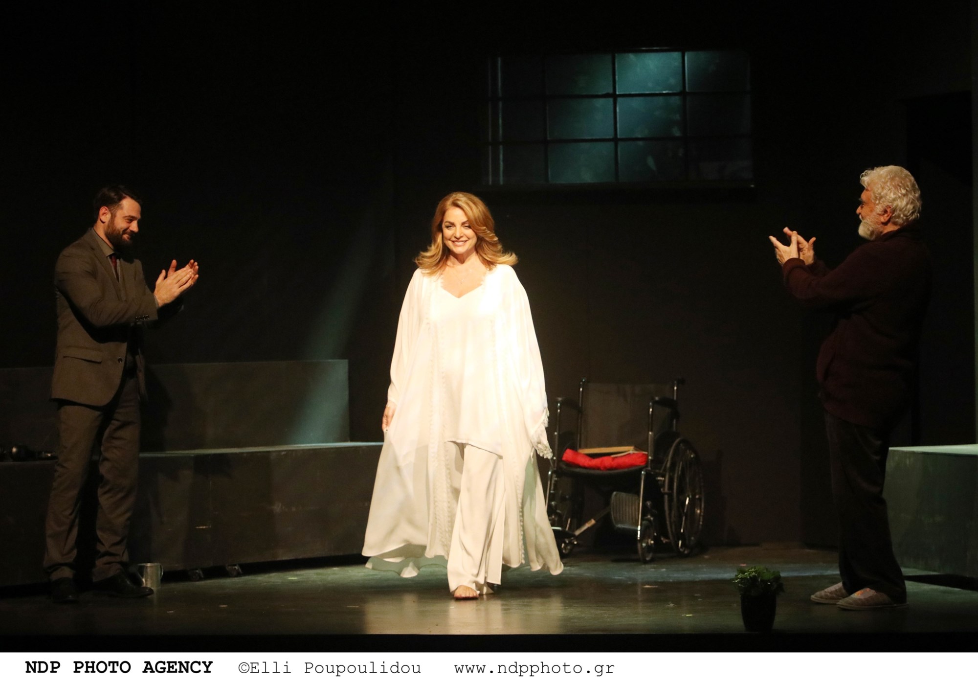 Άντζελα Γκερέκου: : Eπί σκηνής ξυπόλητη, ντυμένη στα λευκά.