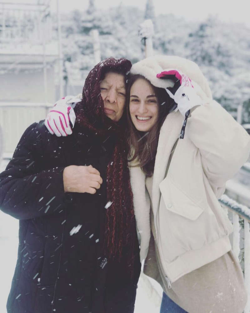Εκμεταλλεύτηκαν το χιονισμένο τοπίο η Άντζελα Γκερέκου μαζί με την κόρη της και βγήκαν στο μπαλκόνι να φωτογραφηθούν αγκαλιά.