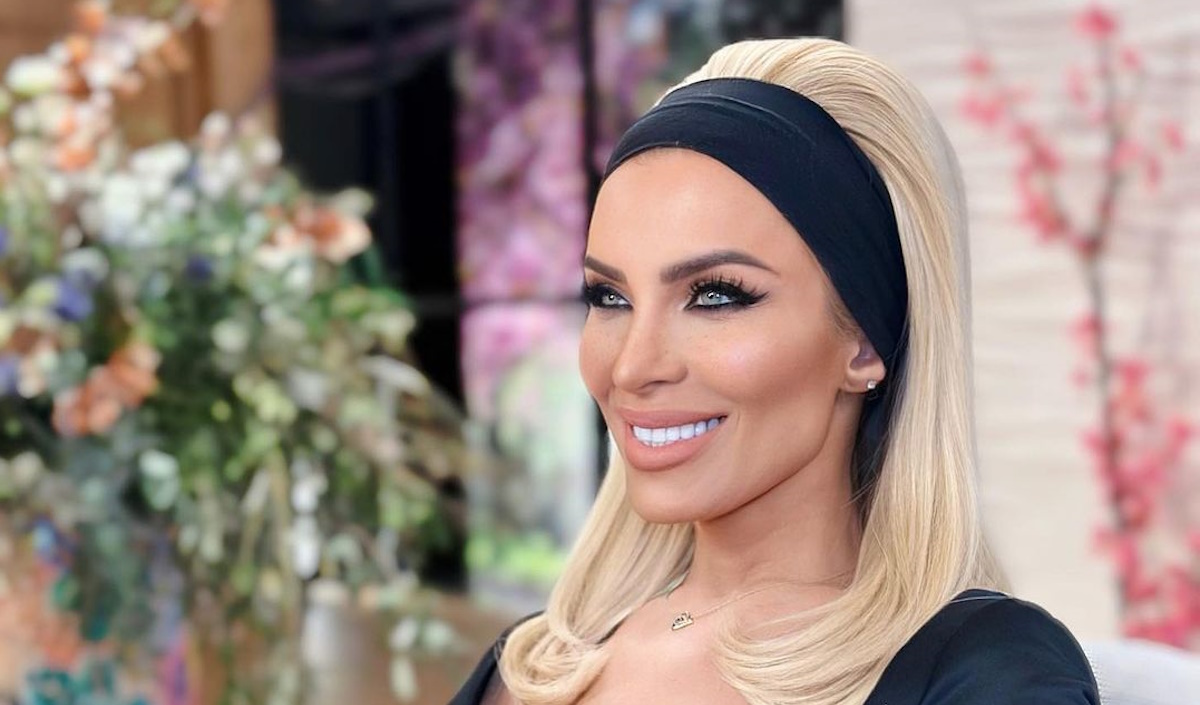 Η Κατερίνα Καινούργιου ποζάρει μέσα στα μαξιλάρια της, ξαπλωμένη στο κρεβάτι της, χωρίς ίχνος μακιγιάζ, χαμογελώντας στον φακό.