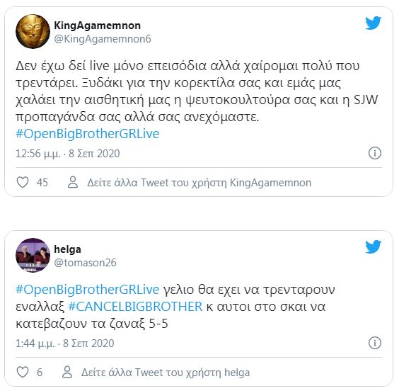 Άμεσα τα αντανακλαστικά στα social media, ανέβασαν στις πρώτες θέσεις των ελληνικών trends του Twitter το hashtag #cancelbigbrother (δηλαδή ακυρώστε το Big Brother).