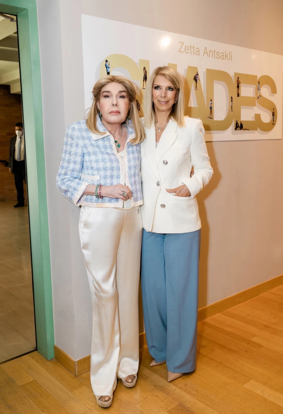 Ενώ η Χρυσή Βαρδινογιάννη πόζαρε μαζί με την ξαδέλφη της και πόνταρε σε ένα λιτό σύνολο με λευκή μπλούζα, μπεζ παντελόνι, grecian σανδάλια και τσάντα Loewe.