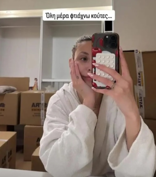Σε ένα από τα stories που ανέβασε η Γαρυφαλλιά Καληφώνη, εμφανίζεται η ίδια σε ένα δωμάτιο το οποίο γεμάτο από κούτες. «Όλη μέρα φτιάχνω κούτες…» έγραφε στο Story, ενώ σε άλλο είχε αποκαλύψει ότι είναι έτοιμη να κάνει αγορές για το νέο της σπίτι.