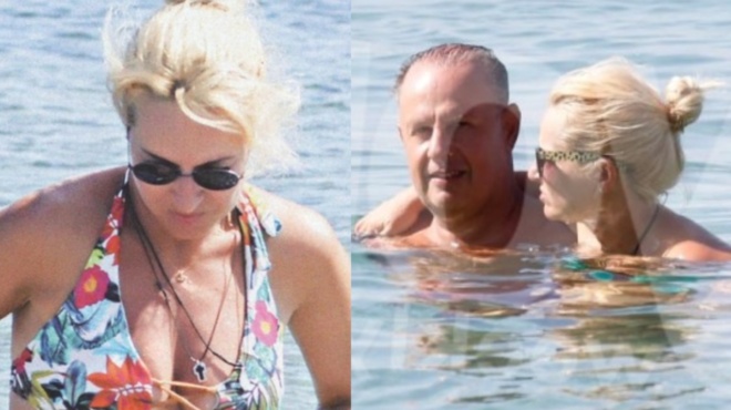Το ζευγάρι μετρά πολλά χρόνια κοινής πορείας και γάμου, ωστόσο λίγες είναι οι φωτογραφίες από κοινές τους εμφανίσεις. Πρόσφατα ο φωτογραφικός φακός του εντόπισε να απολαμβάνουν τις διακοπές τους σε παραλία της Μυκόνου. Όπως βλέπουμε από τις φωτογραφίες, το ζευγάρι παραμένει ερωτευμένο και καθόταν αγκαλιά μέσα στο νερό.