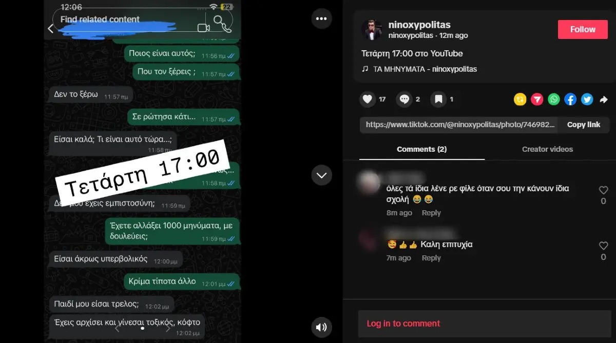 Ο Νίνο συνεχίζει να μην αφήνει τίποτα στην τύχη του κι αυτή τη φορά δημοσίευσε μηνύματα στον προσωπικό του λογαριασμό στο TikTok που υποδηλώνουν απιστία.