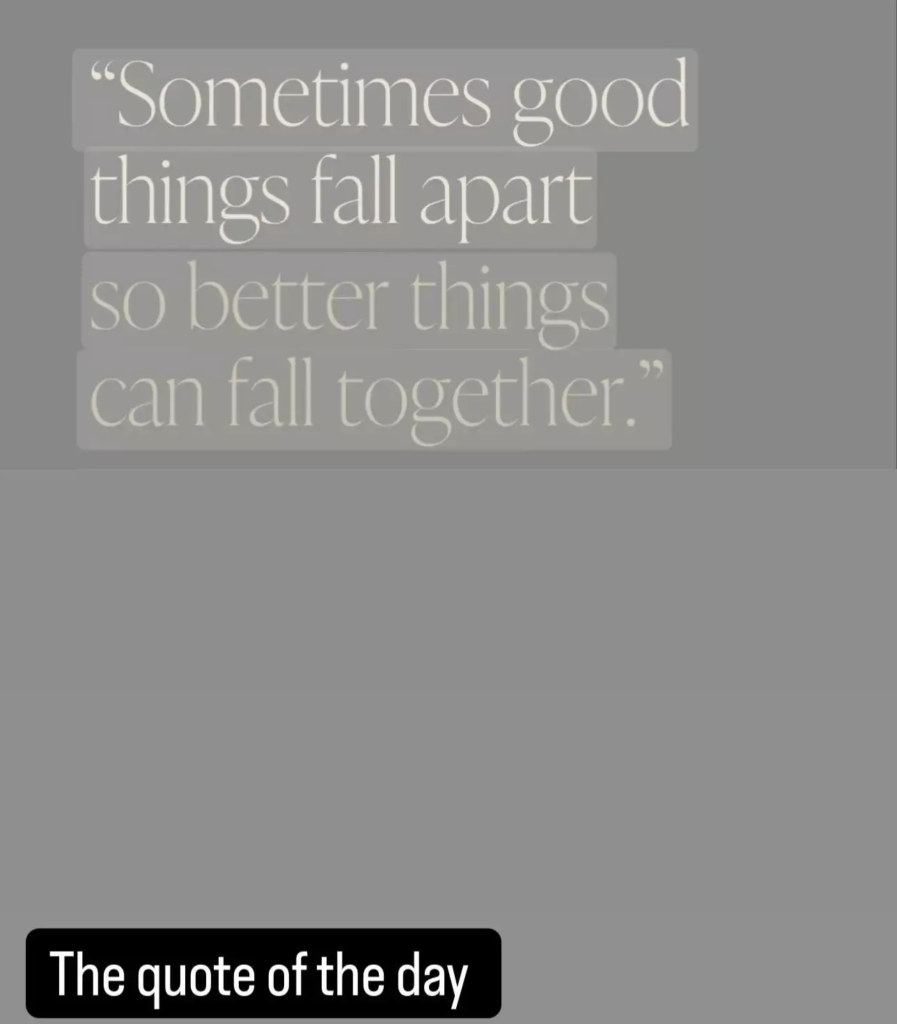 «Μερικές φορές τα καλά πράγματα καταρρέουν, έτσι τα καλύτερα πράγματα μπορούν να πέσουν μαζί» αναφέρεται χαρακτηριστικά στην ιστορία.