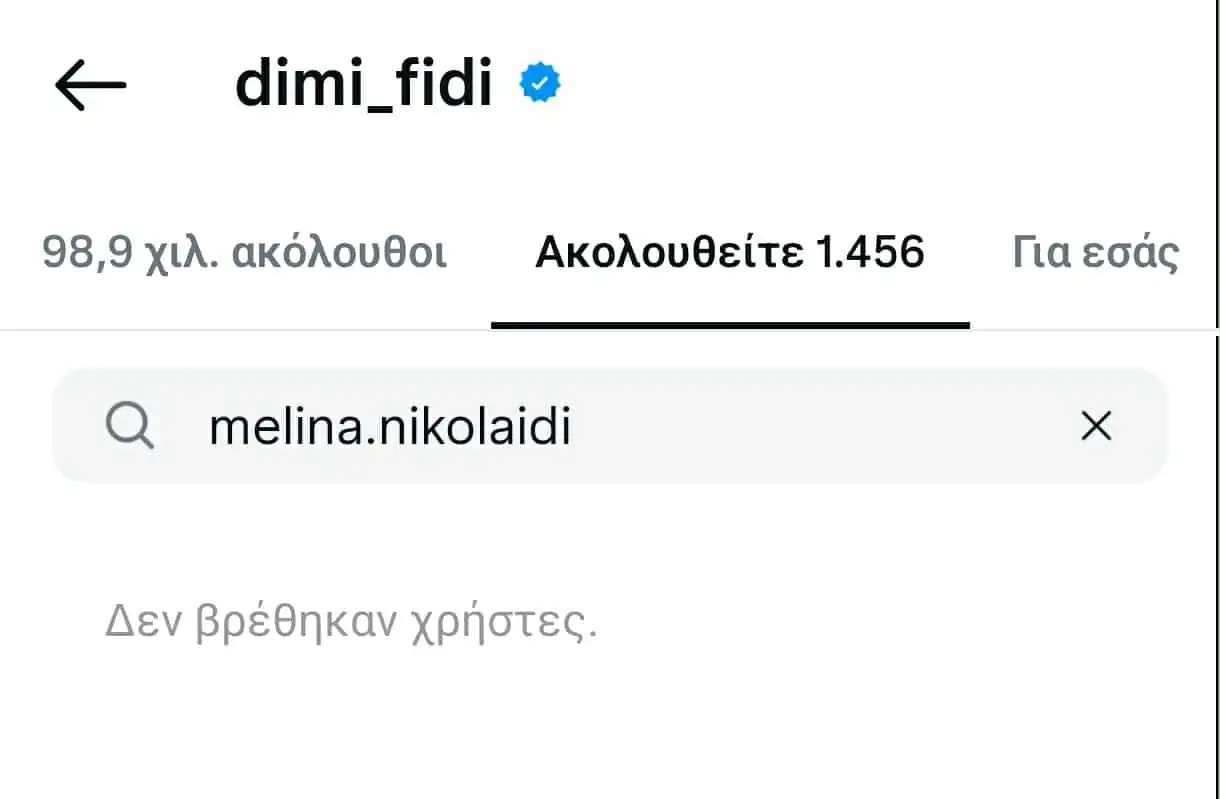 Μελίνα Νικολαΐδη και Δημήτρης Φιντιρίκος έκαναν unfollow ο ένας τον άλλον στο Instagram, «σφραγίζοντας» έτσι τον χωρισμό τους, ο οποίος επήλθε πριν λίγους μήνες.