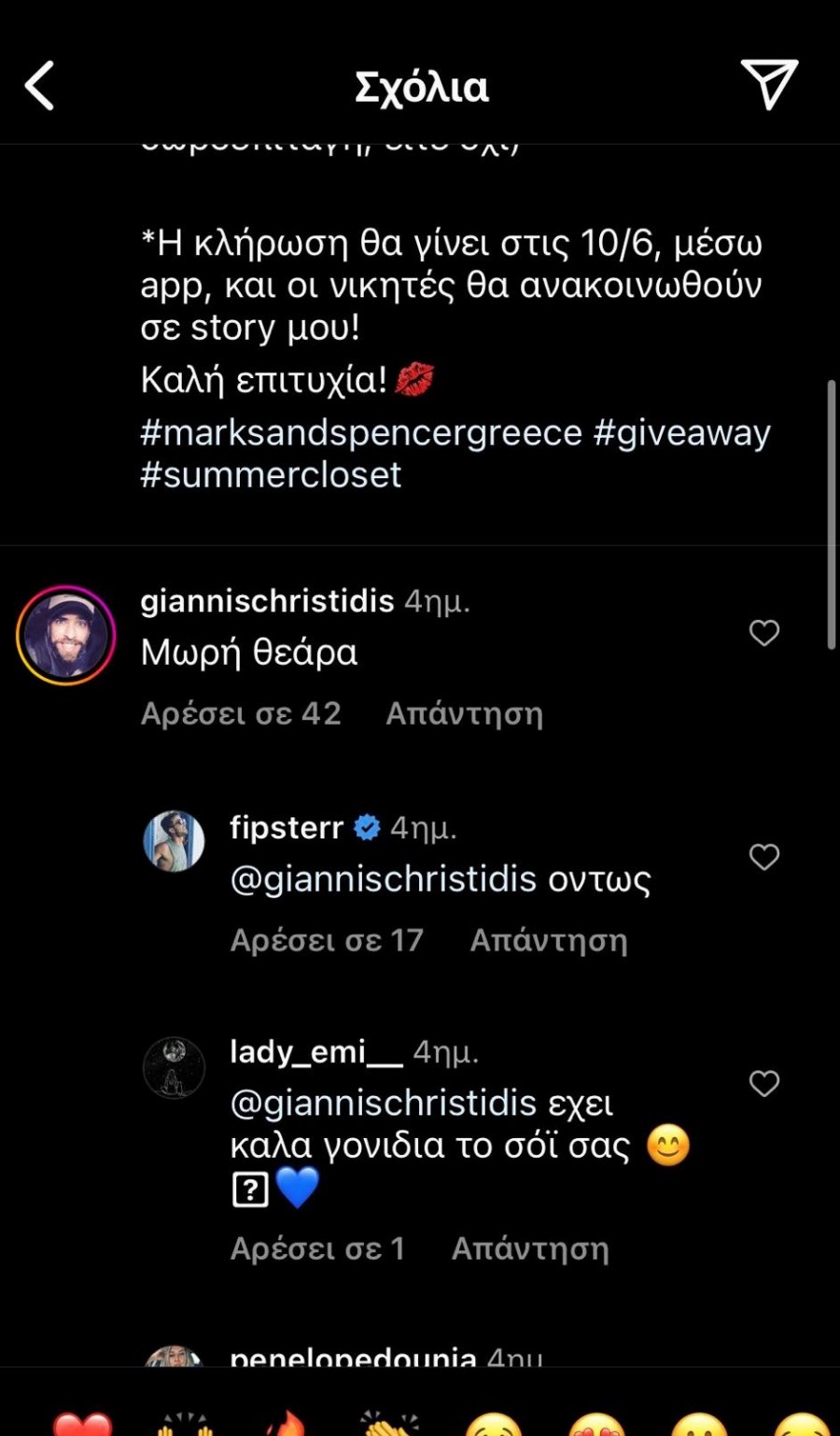 Για να έρθει η απάντηση από μια θαυμάστριά του η οποία έγραψε: «Έχει καλά γονίδια το σόι σας».
