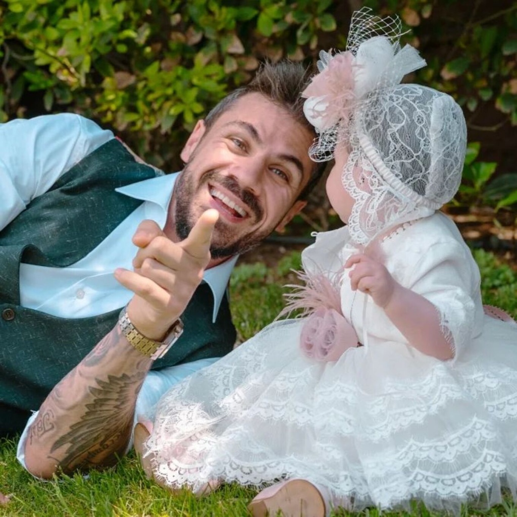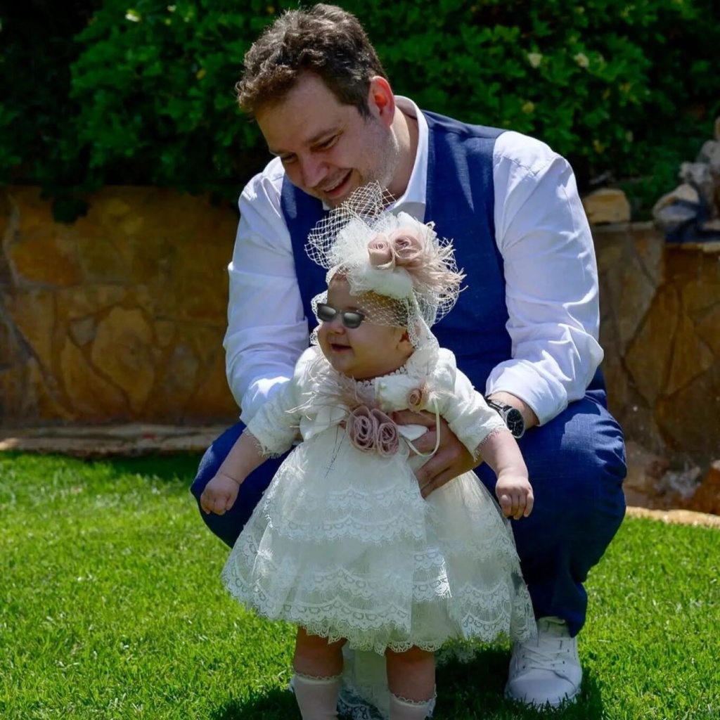 Στη λεζάντα της ανάρτησης έγραψε: «7 Σεπτεμβρίου είναι η γιορτή της Αγίας Ακυλίνας… Εκείνη την ημέρα βαφτίσαμε τον γιόκα μας και παντρευτήκαμε! Ευχόμαστε η πριγκιπισσούλα μας να είναι υγιής και καλότυχη! Για όλα τα υπόλοιπα θα φροντίσουν ο μπαμπάς και ο νονός».