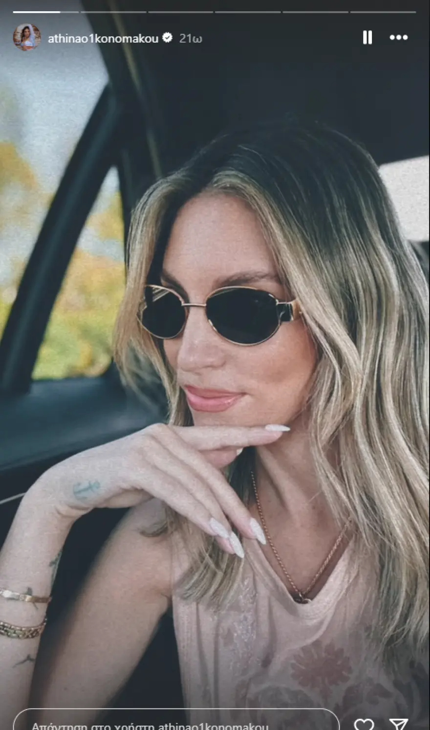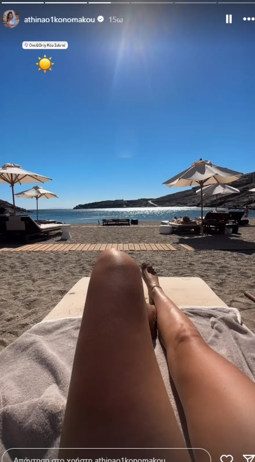 Μέσω του προσωπικού της λογαριασμού στο Instagram, η ηθοποιός και επιχειρηματίας δημοσίευσε δικά της στιγμιότυπα από το μπάνιο και το αυτοκίνητο, στο οποίο βρίσκεται για να ταξιδέψει στο νησί.