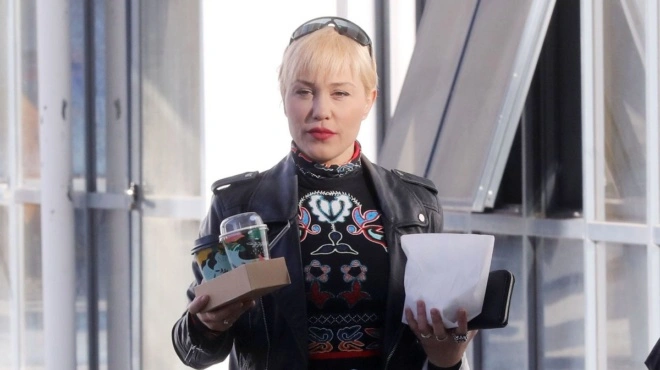 Η 46χρονη ηθοποιός με ροκ outfit και εντυπωσιακό μπούστο, έδειχνε σε μεγάλα κέφια, όπως φαίνεται στα backstage πλάνα του Mykonos Live TV.