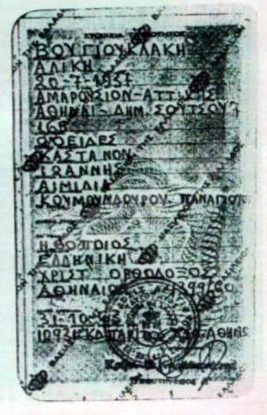 Η ταυτότητα της Αλίκης Βουγιουκλάκη είχε εκδοθεί στις 31 Οκτώβρη του 1963 και η περιγραφή της έχει ως εξής: