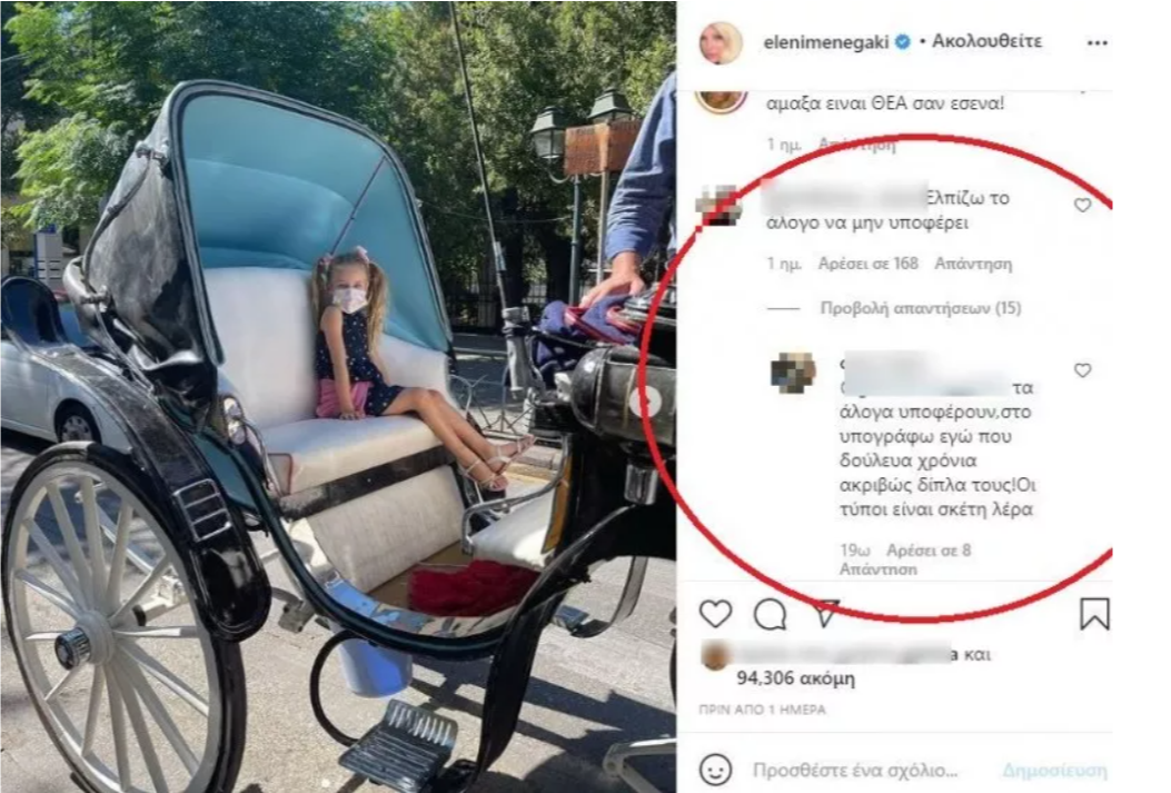 Κάποιοι διαδικτυακοί της φίλοι ξεσηκώθηκαν, ως φιλόζωοι, και απόρησαν πως περνούν τα αλογάκια που τραβούν την άμαξα. Η κατάσταση στα σχόλια πήρε άλλες διαστάσεις…