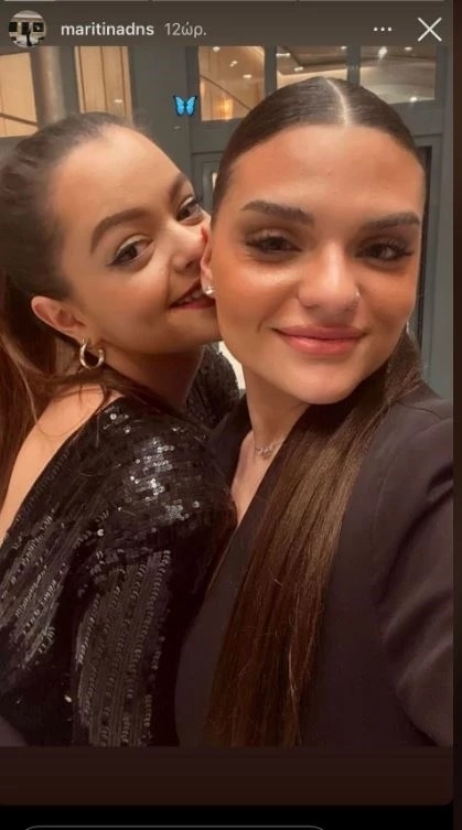 Η Μιμή και η Μαριτίνα πόζαραν χαμογελαστές στο φακό τη μεγάλη βραδιά και εντυπωσίασαν με την κομψότητά τους. Η Μιμή φορούσε μία εντυπωσιακή μάξι μαύρη φούστα με κρόσσια και λάμψεις που συνδύασε αρμονικά με ένα λευκό τοπ και ένα μάξι μαύρο σακάκι. Στο λαιμό της φόρεσε ένα εντυπωσιακό κόσμημα ενώ τα μαλλιά της είχε πιάσει ένα ελαφρύ σινιόν. Η Μαριτίνα επέλεξε μία μαύρη ολόσωμη φόρμα με παγέτα και ανοιχτή πλάτη. Τα μαλλιά της είχε πιάσει μία σφιχτή αλογοουρά και στο μακιγιάζ της έδωσε έμφαση στα χείλη της με ένα κατακόκκινο κραγιόν.