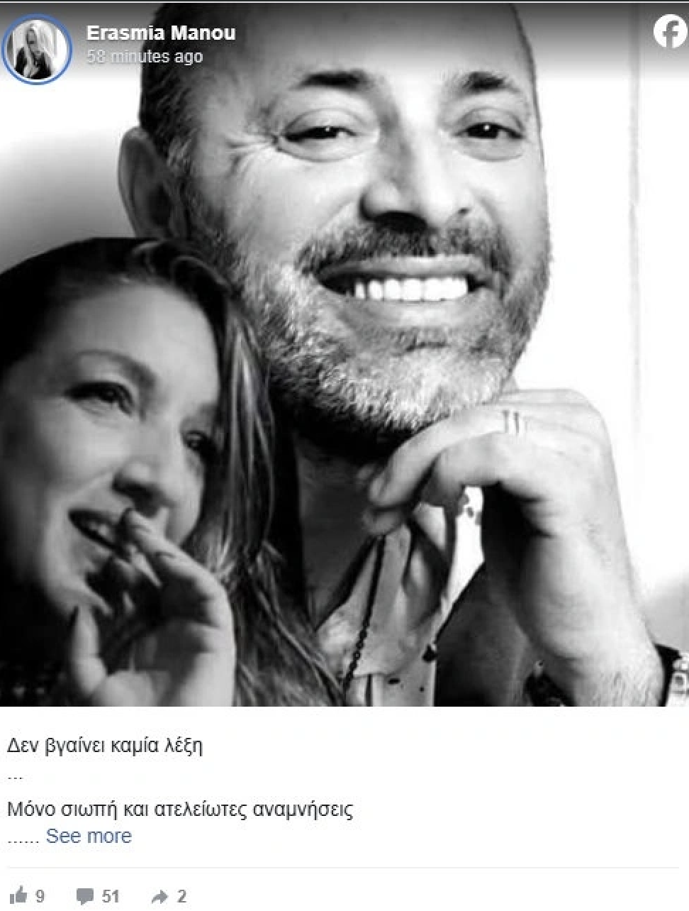 Με τη σειρά της και μέσω ανάρτησή της στα social media, η οποία είχε προβληθεί στην εκπομπή Happy Day, η Ερασμία Μάνου σχολίασε με αιχμηρό τρόπο στις δηλώσεις του πρώην συντρόφου της, ως εξής: