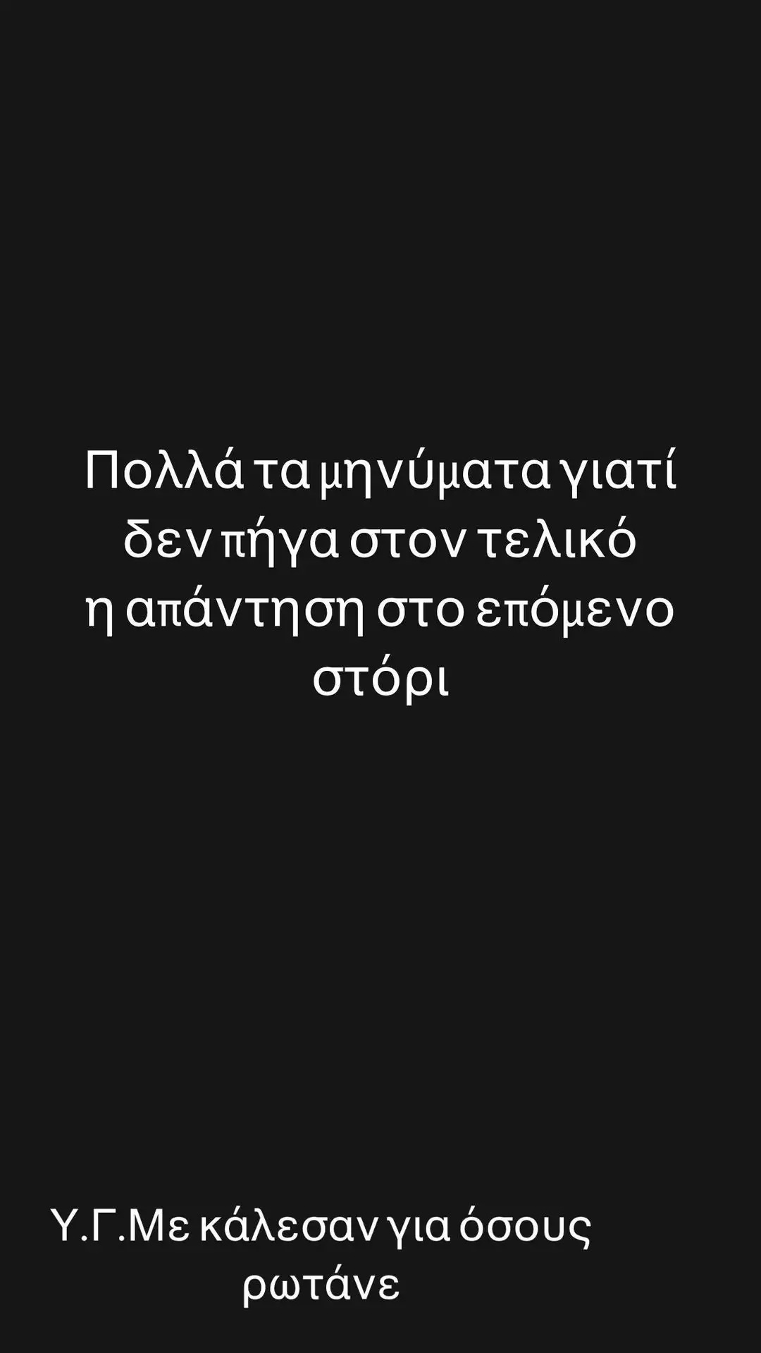 «Πολλά τα μηνύματα γιατί δεν πήγα στον τελικό. Η απάντηση στο επόμενο στόρι. Υ.Γ Με κάλεσαν για όσους ρωτάνε», έγραψε χαρακτηριστικά ο Κώστας Αναγνωστόπουλος στο Instagram.