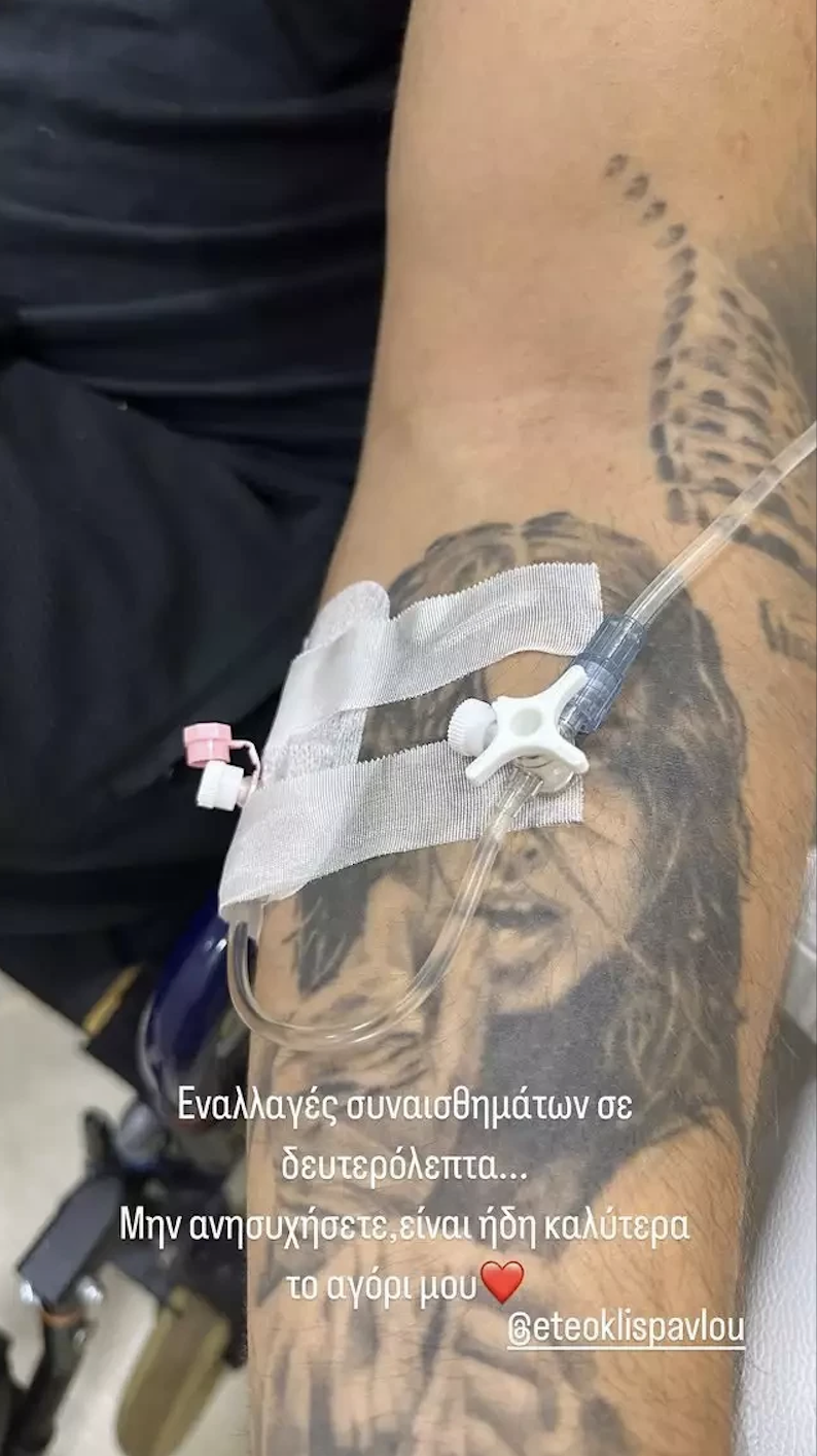 Η σύζυγός του, Ελένη Χατζίδου, ενημέρωσε το κοινό μέσω ενός story στον προσωπικό της λογαριασμό στο Instagram. Στην ανάρτηση, εμφανίζεται το χέρι του Ετεοκλή Παύλου με πεταλούδα, καθώς οι γιατροί του προχώρησαν σε σχετική ιατρική διαδικασία.