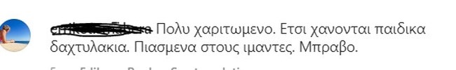 Καταιγισμό αρνητικών σχολίων δέχθηκε η εν προκειμένω δημοσίευση, με αποτέλεσμα να αναγκαστεί να κατεβάσει ανάρτησή της στον προσωπικό της λογαριασμό στο Instagram.