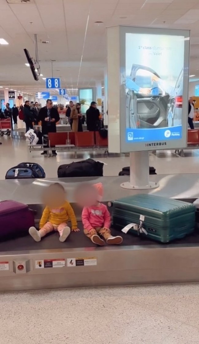 Σούσουρο προκάλεσε η ανάρτηση από την Χριστίνα Μπόμπα που δείχνει τα παιδιά της καθισμένα στον ιμάντα αποσκευών, την οποία σύντομα κατέβασε.