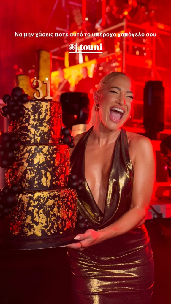 Μάλιστα η εντυπωσιακή τριώροφη τούρτα ήταν εναρμονισμένη με τα χρώματα της εμφάνισης της Ιωάννας Τούνη.