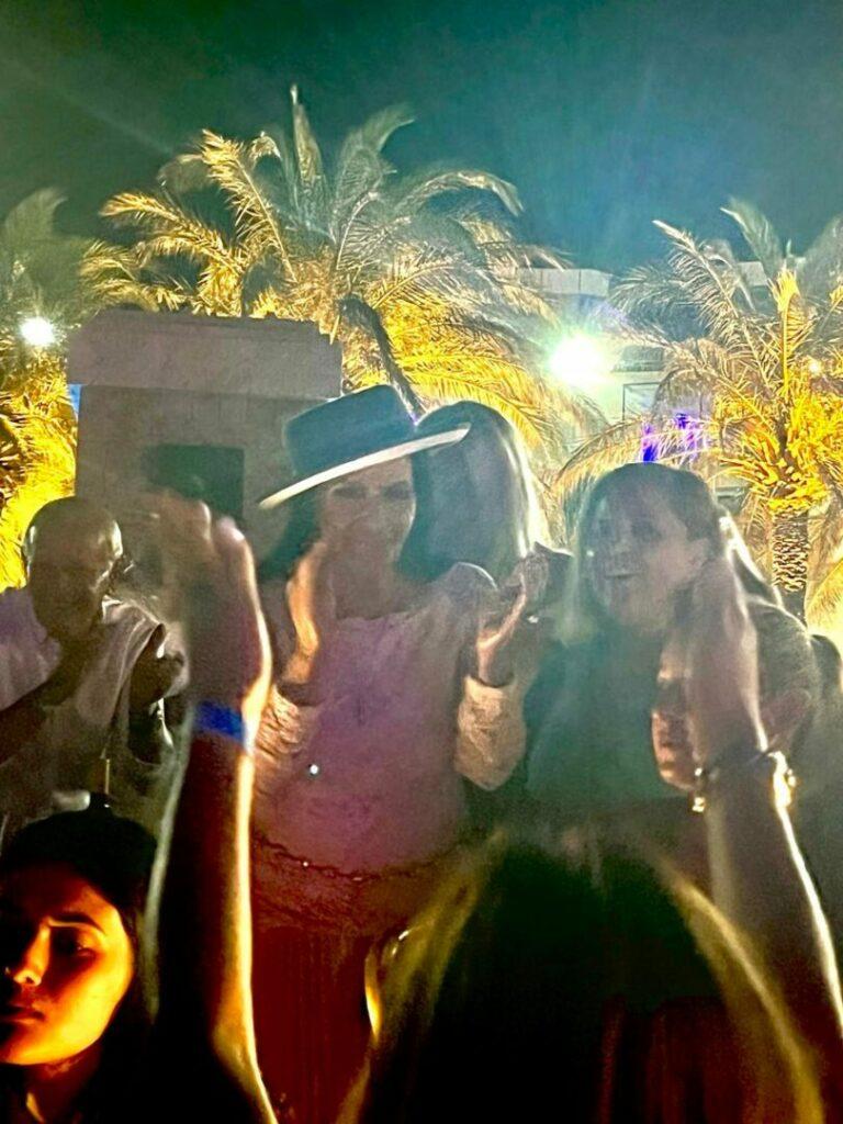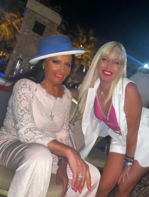 Μετά το δείπνο, συνοδευόμενη από την Ευτυχία Φαγκιά, ιδιοκτήτρια του εστιατορίου και φίλη της, εμφανίστηκε στον χώρο της πισίνας του ξενοδοχείου, με τον κόσμο, που καθόταν στα γύρω τραπέζια, να τρέχει αμέσως δίπλα της.