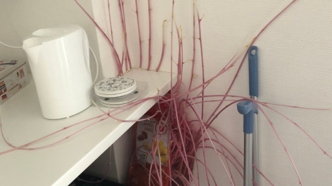Πατάτες που είχε αφήσει σε μια γωνία, μέσα στο εσωτερικό ενός σάκου, φαίνεται να έβγαλαν ρίζες. Μάλιστα, οι ρίζες ήταν τόσο μεγάλες που κάλυψαν μεγάλο μέρος του προσκείμενου τοίχου. Η φοιτήτρια που σπουδάζει στη Γαλλία ανέβασε τις παρακάτω φωτογραφίες στα social media. Όπως ήταν φυσικό, οι κάτωθι φωτογραφίες, έγιναν πολύ γρήγορα viral.
