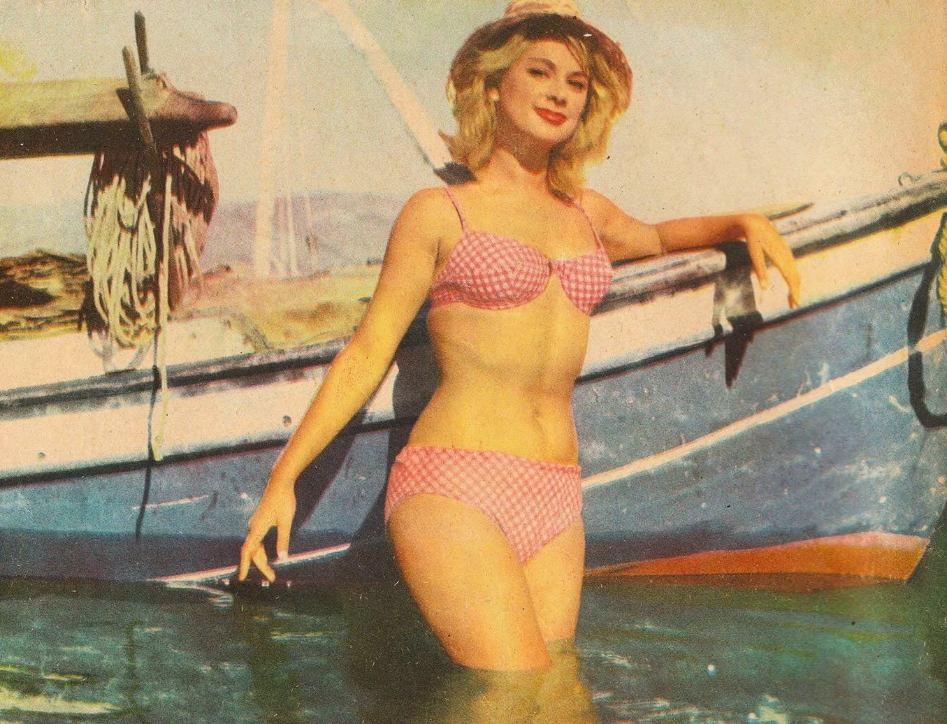 Στο στιγμιότυπο, η Αλίκη ποζάρει για το εξώφυλλο του περιοδικού Ταχυδρόμος, πανέμορφη, λαμπερή και σαγηνευτική. Φορά μια πορτοκαλί-μωβ αμάνικη μπλούζα, που αναδεικνύει τη θηλυκότητά της, είναι εμφανώς μαυρισμένη και κρατά ασορτί καπέλο. Η φωτογράφιση πραγματοποιήθηκε στη θάλασσα, με φόντο παραλία και βράχια, ενώ τα χαρακτηριστικά ξανθά μαλλιά της παρασύρονται από τον αέρα. Το cat eye μακιγιάζ και τα glossy χείλη ολοκληρώνουν την εικόνα της απόλυτης Ελληνίδας σταρ, μιας γυναίκας που έζησε έντονα, αγάπησε τη ζωή και άφησε πίσω της έναν μύθο που εξακολουθεί να συγκινεί.