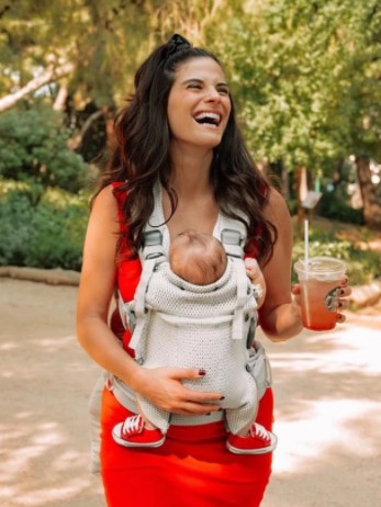 Στη φωτογραφία είναι η Χριστίνα έχοντας στο μάρσιπο το ένα από τα δύο μωρά και οι ακόλουθοί της αναρωτήθηκαν για ποιο λόγο βγαίνει βόλτα μόνο με τη μία της κόρη;