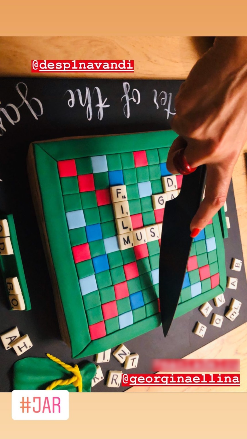Η δημοφιλής τραγουδίστρια και κριτής του J2Us δεν έσβησε μια τούρτα… αλλά τέσσερις! Η κολλητή της Μάνια Ντέλου, μάλιστα, τις έφτιαξε μια υπέροχη τούρτα σε σχήμα του επιτραπέζιου Scrabble, μιας και είναι το αγαπημένο της παιχνίδι! Φυσικά από το πλευρό της, όσο έκοβε την τούρτα της ήταν η κόρη της, Μελίνα, με την οποία είναι πραγματικά αχώριστη!