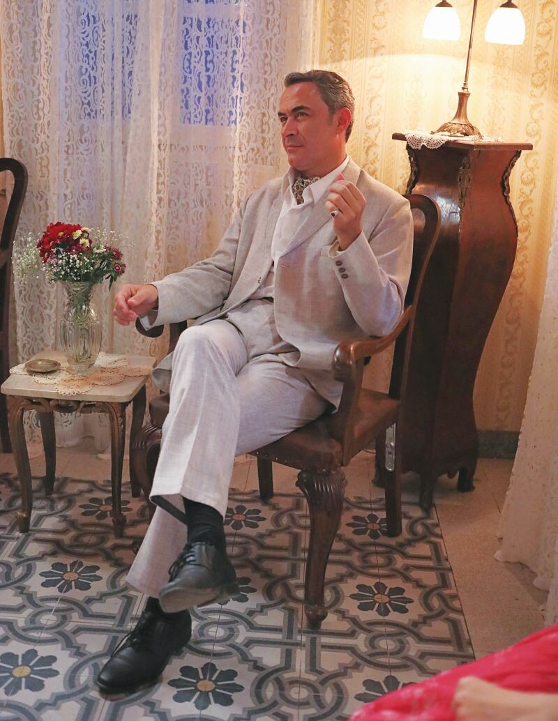 Θανάσης Κουρλαμπάς – Απάντηση: Με τον σκηνοθέτη της σειράς Λευτέρη Χαρίτο είχαμε συνεργαστεί το 2008 στον Alpha. Οταν με κάλεσαν με τη σεναριογράφο Μελίνα Τσαμπάνη για τον συγκεκριμένο ρόλο, το σκέφτηκα πάρα πολύ σοβαρά, γιατί ήταν ένα μεγάλο στοίχημα για μένα υποκριτικά! Πώς υποδύεσαι έναν άνθρωπο καιροσκόπο, που κρύβει αυτή την εποχή, το 1950, τον σεξουαλικό του προσανατολισμό, κάνει έναν γάμο από συμφέρον για πλούτο και εξουσία και έχει μάθει να επιβιώνει με κάθε τρόπο; Για μένα αυτός ο ρόλος καλλιτεχνικά έχει ιδιαίτερο ψυχολογικό ενδιαφέρον. Ο Κλεομένης είναι ένας κόντρα ρόλος για μένα. Δεν έχω καμία σχέση μαζί του. Η μοίρα μού έδωσε έναν σκληρό και αντιπαθητικό ρόλο (γέλια). Ο Λευτέρης Χαρίτος με βοήθησε πάρα πολύ. Δεν είναι για μένα μόνο ένας σημαντικός σκηνοθέτης, αλλά ένας υπέροχος άνθρωπος. Με βοήθησε πολύ να προσεγγίσω τον Κλεομένη, να καταλάβω γιατί αυτός ο χαρακτήρας έχει φάει τόσο πολύ μπούλινγκ στη ζωή του και έχει γίνει εχθρικός. Εχει σκληρύνει η καρδιά του και έχει συνειδητοποιήσει ότι για να επιβιώσει πρέπει να έχει ένα πράγμα: χρήμα!