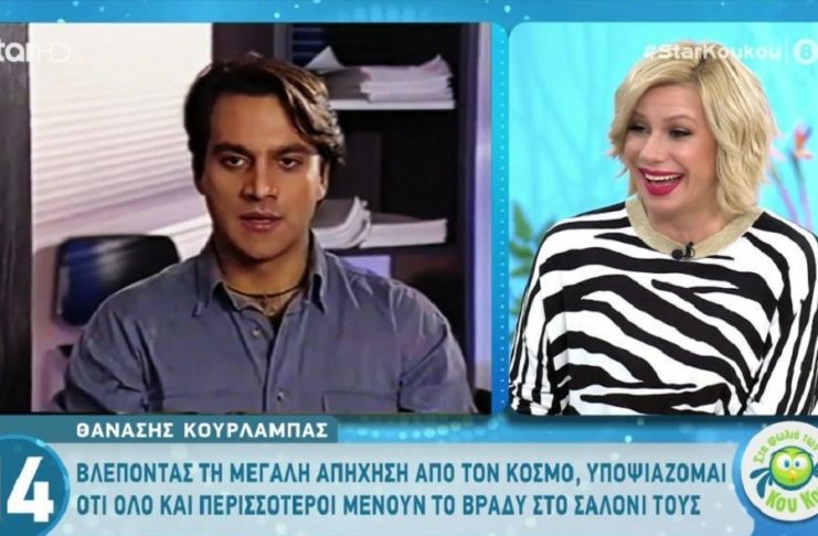 Κρατερός Κατσούλης: Ο Θανάσης Κουρλαμπάς παραχώρησε συνέντευξη στην τηλεόραση του «STAR» και την εκπομπή «Στη Φωλιά των Κου Κου». Μάλιστα, κατά τη διάρκεια της συνέντευξής του, προβλήθηκαν πλάνα από μία παλαιότερη σειρά. Σε εκείνη τη σειρά, που ονομαζόταν, «Οργή των θεών», έτυχε να παίζει και ο σύζυγος και συμπαρουσιαστής της Κατερίνας Καραβάτου, Κρατερός Κατσούλης.
