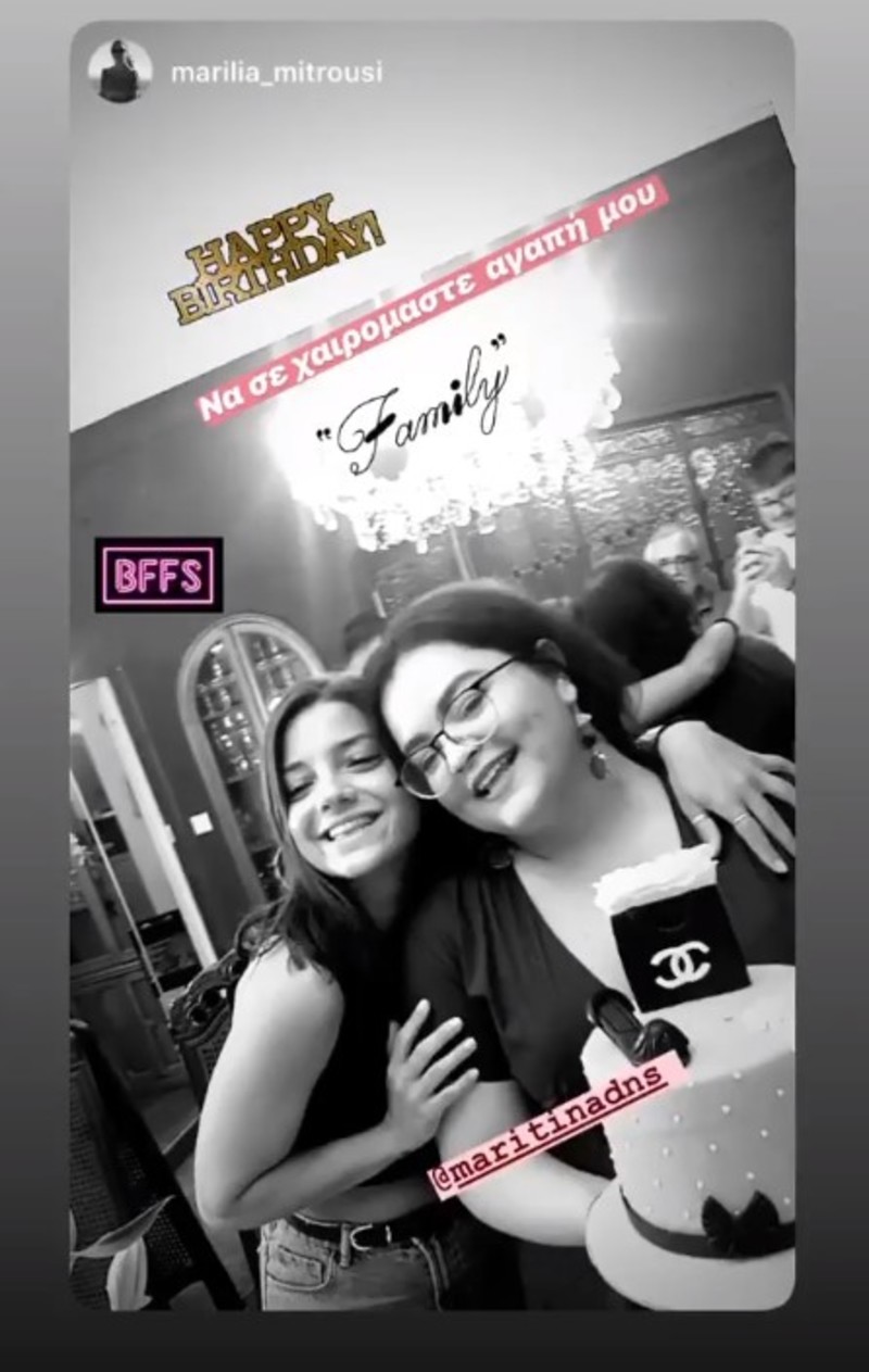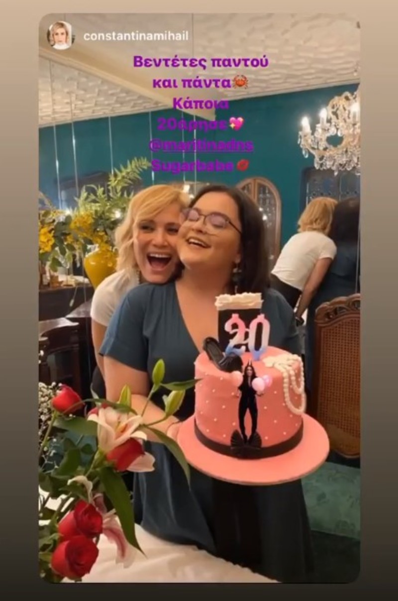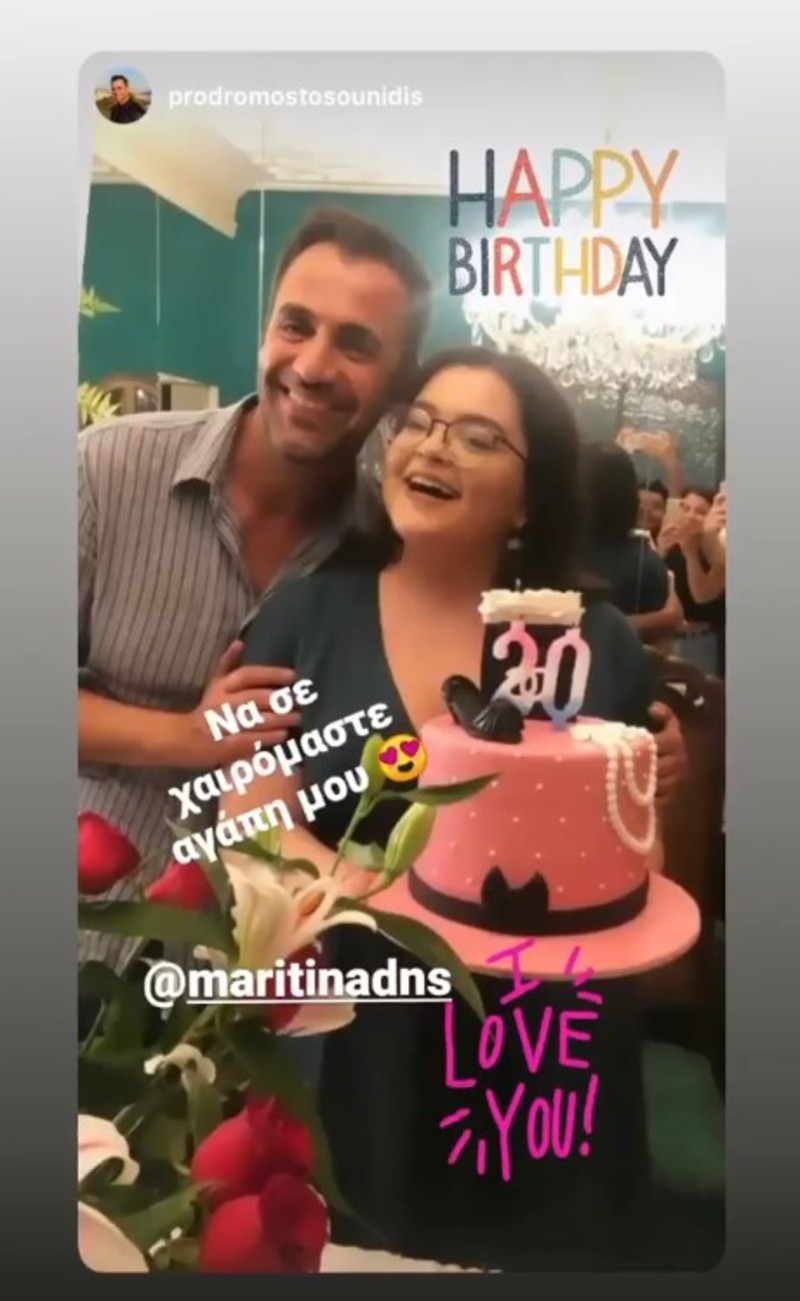 Ανάμεσα στους καλεσμένους ήταν οι Πρόδρομος Τοσουνίδης, Κατερίνα Γερονικολού, Μαρίλια Μητρούση κ.α. Στο πλευρό της 20χρονης Μαριτίνας βρέθηκε και ο πρώην σύζυγος της Μιμής Ντενίση. Αυτός δεν ήταν άλλος από τον Σωτήρη Πολύζο, τον οποίο μάλιστα νιώθει σαν πατέρα της. «Η αγάπη μου έγινε ήδη 20. Σ’αγαπάω», έγραψε η ηθοποιός ποστάροντας φωτογραφία τους αγκαλιά.