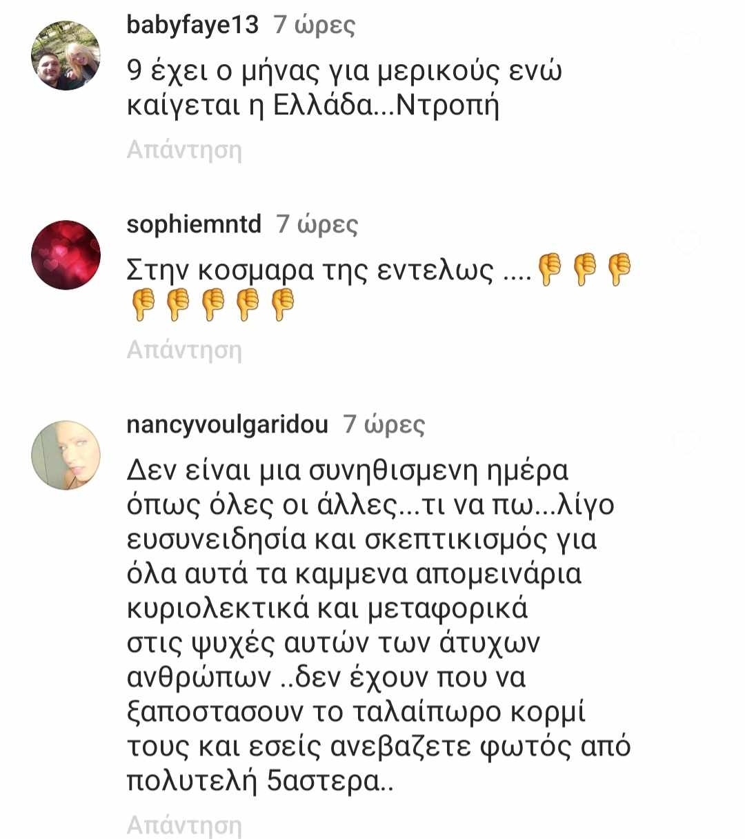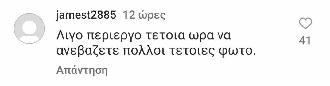 Η Δέσποινα Βανδή έκανε και μια ανάρτηση στον λογαριασμό της στο Instagram με φωτογραφίες δικές της και του Βασίλη Μπισμπίκη από το κατάλυμα στο οποίο έμειναν στην Κρήτη, κυρίως ποζάροντας στην πισίνα του. Αρκετά από τα σχόλια ήταν κολακευτικά ωστόσο καθώς η χώρα μας παλεύει με τις φωτιές αρκετός κόσμος έκρινε και το έδειξε με τα σχόλια του πως δεν ήταν πρέπον ενώ άνθρωποι χάνουν τις περιουσίες τους και τα σπίτια τους και κινδυνεύει η ζωή τους, κάποιοι μέσω social να επιδεικνύουν χλιδή και ξένοιαστες στιγμές διασκέδασης. Κάτι ανάλογο είχε συμβεί και πέρσι την περίοδο των φωτιών καθώς και στα Τέμπη. Φυσικά το πως βιώνει ο καθένας οποιαδήποτε εθνική και μη τραγωδία είναι υποκειμενικό και ο κόσμος ειδικά μέσω Internet θα ξεσπάει και θα λέει τη γνώμη του, εξάλλου είναι και το τίμημα της δημοσιότητας για τους celebrities. Δείτε την ανάρτησή της Δέσποινας και μερικά από τα επικριτικά σχόλια.