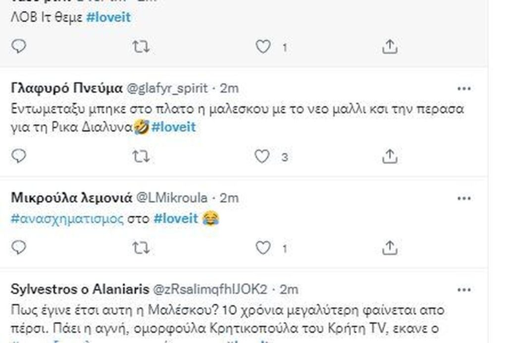 Μάλιστα, λίγα λεπτά μετά την έναρξη της εκπομπής, η ξανθιά παρουσιάστρια δε δίστασε να αναφερθεί και σε όσα ακούστηκαν πέρυσι για την προφορά του “Love it”, με τους συνεργάτες της να κάνουν τα δικά τους χιουμοριστικά σχόλια.
