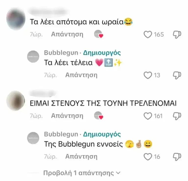 «Για τον Αλεξάνδρου μιλάει; Δεν το λέω με κακία. Αγαπώ Τούνη!» ανέφερε άλλος διαδικτυακός φίλος της. «Η συμπεθέρα δικάζει καθημερινά!» ήταν ένα ακόμα σχόλιο, κάτω από το βίντεο που σήκωσε η επιχειρηματίας.