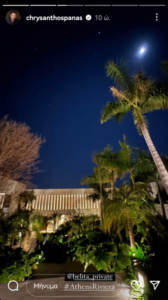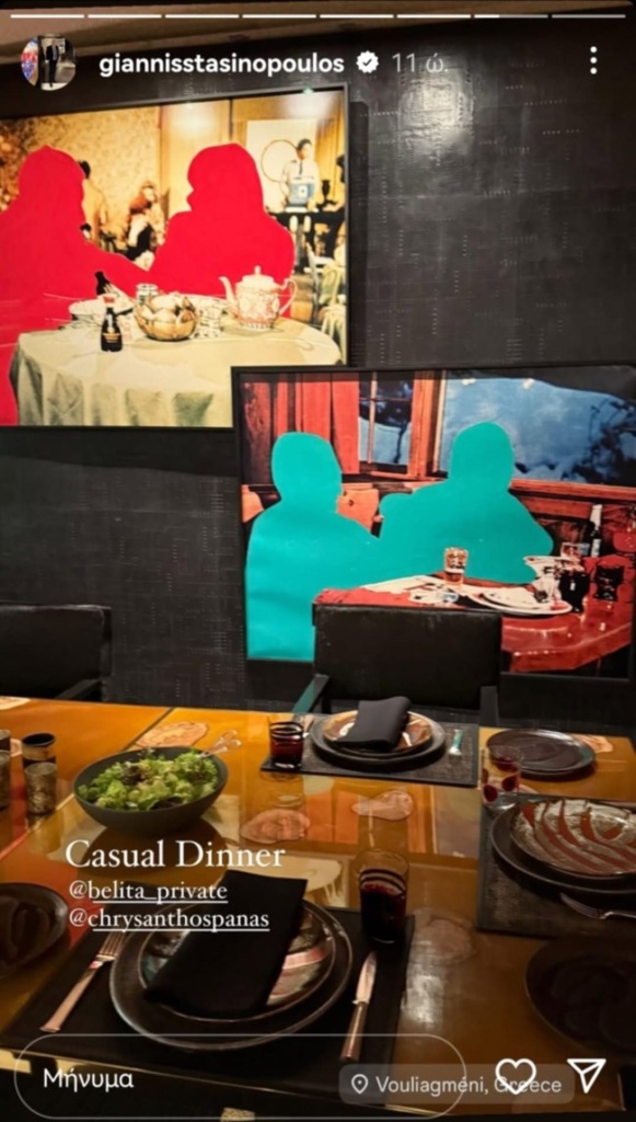 O ιδιοκτήτης του Athene μοιράστηκε στα social media του εικόνες από το εκλεπτυσμένο dinner αλλά και από τους εσωτερικούς και εξωτερικούς χώρους του σπιτιού του Έλληνα εφοπλιστή και της συζύγου του. Στο χώρο που έγινε το δείπνο, κυριαρχεί το μαύρο και μία μοντέρνα τραπεζαρία ενώ χρώμα δίνουν τα έργα Τέχνης που κοσμούν τους τοίχους.