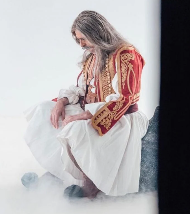 Στις backstage φωτογραφίες που ανέβηκαν στα social media, ο δημοφιλής ηθοποιός εμφανίζεται «μεταμορφωμένος» στον Γέρο του Μοριά να μελετάει το κείμενό του, λίγο πριν από την έναρξη του γυρίσματος και της φωτογράφισής του.
