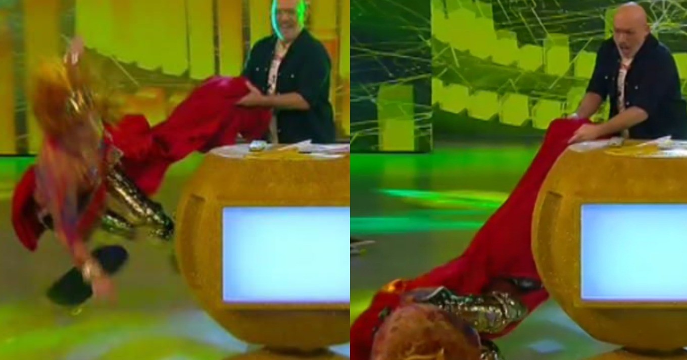 Πιο συγκεκριμένα, η «Βάνια» μπήκε στο πλατό κάνοντας skate και όταν έφτασε στο πλευρό του Νίκου Μουτσινά θέλησε να κάνει μια στροφή, με συνέπεια να πέσει με το πρόσωπο στο πάτωμα.
