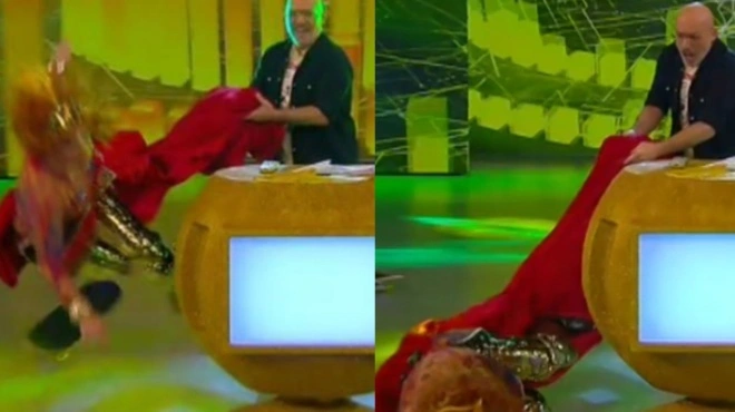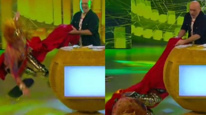 Όπως ήταν επόμενο, ο Νίκος Μουτσινάς τρόμαξε, ωστόσο η Ματίνα Νικολάου σηκώθηκε χαμογελαστή σαν να μη συνέβη τίποτα!