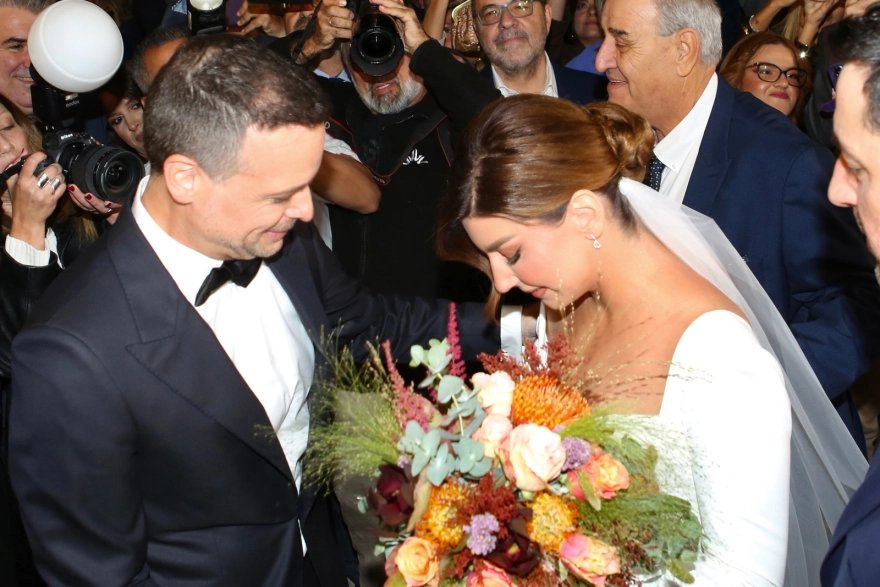 Λίγο μετά τις 19:10, η νύφη έφτασε στην εκκλησία και αμέσως χάρισε έναν φιλί στον Χάρη Δούκα.